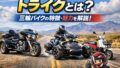 近年、街中やツーリング先で見かけることが増えてきた「トライク」。見た目はバイクのようでありながら、車輪が3つある独特な乗り物です。この記事では、トライクとは何かという基本から、種類・特徴・バイクとの違いまでを、初めての方にもわかりやすく解説...