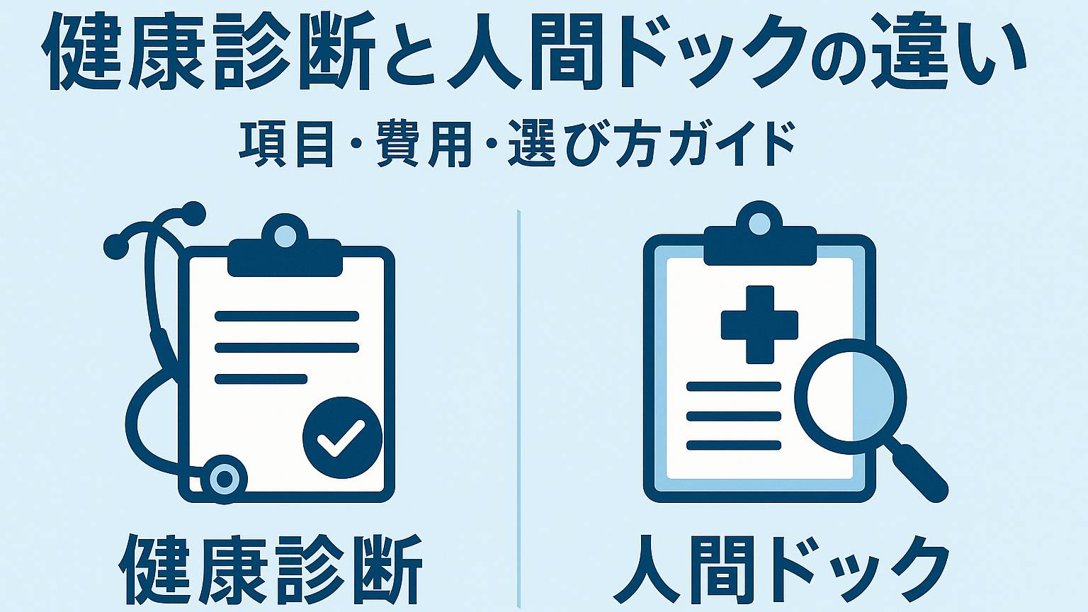 健康診断と人間ドックの違い(目的・検査範囲・費用・所要時間・結果の活用)をわかりやすく整理。年代・リスクに応じた受け方の目安と、オプション選びのコツも紹介します。