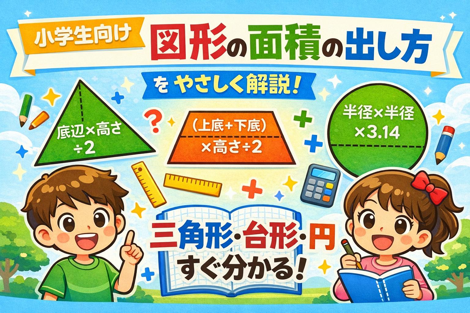 三角形・台形・円を中心とした「図形の面積の出し方」を、