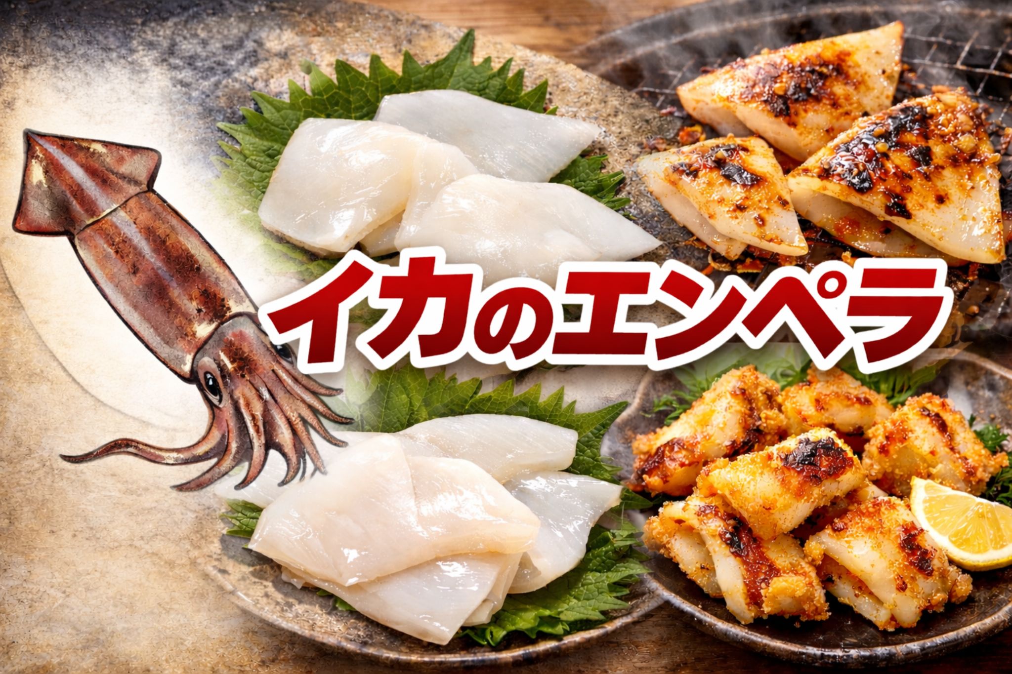 胴の身が「なめらかで柔らかい」のに対し、エンペラはコリコリとした食感が楽しめるため、食べ比べると違いがはっきり分かります。