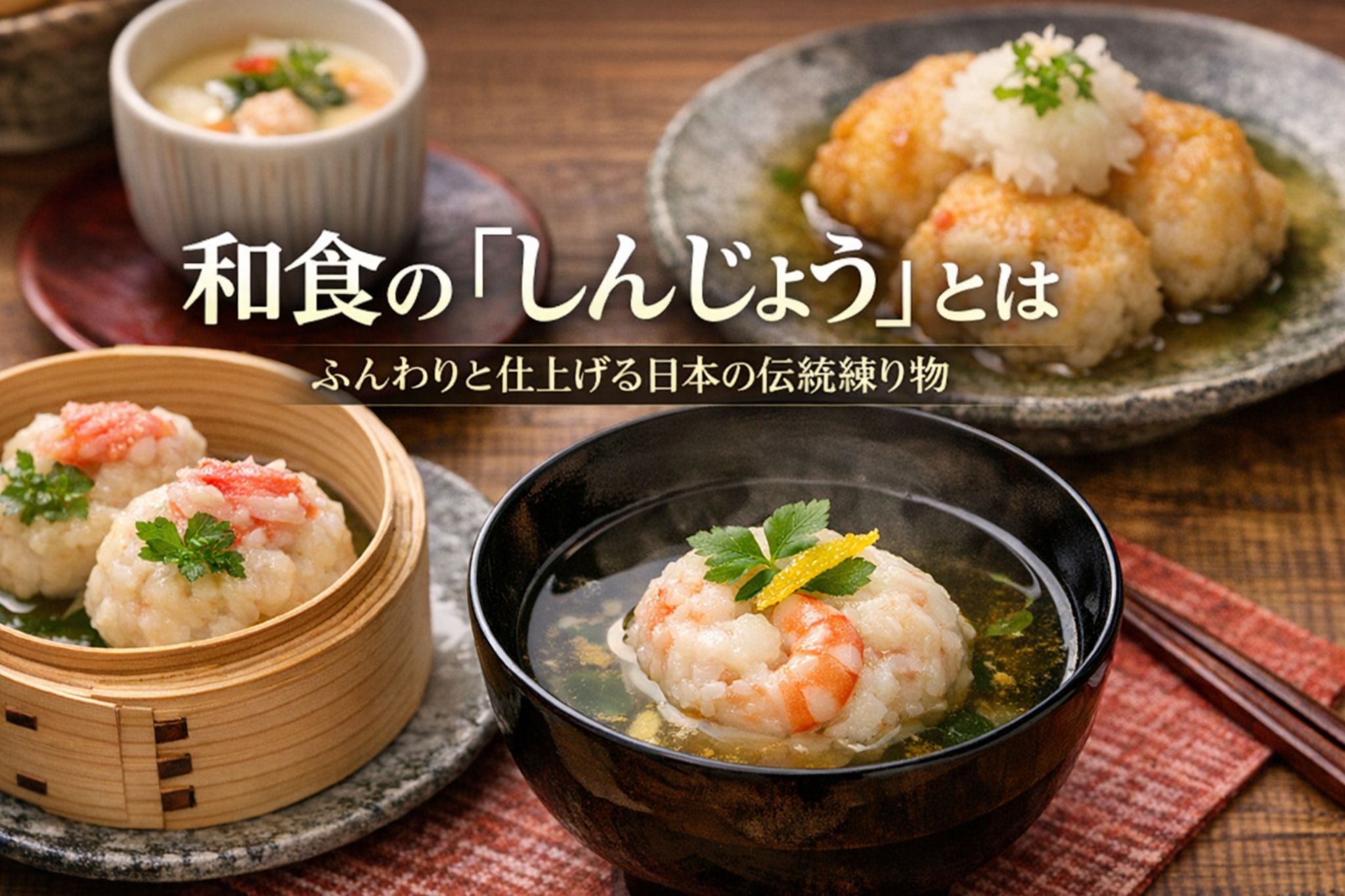 | しんじょう | 会席・椀物 | ふんわり軽い | 卵白・山芋・出汁を加える |