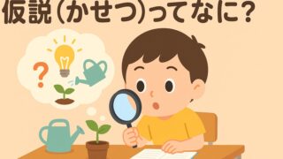 まずは言葉の意味「仮説(かせつ)」とは、まだわからないことを、こうじゃないかな?と考えてみることです。かんたんに言うと、じぶんの考えた「たぶんこうだろう!」という予想のことです。たとえば、理科のじっけんや調べものをするときに使います。たとえ...