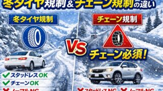 冬の積雪地域や山間部を走行する際に目にする「冬タイヤ規制」と「チェーン規制」。名前は似ていますが、求められる装備と通行条件は大きく異なります。誤解したまま走行すると、通行できない・立ち往生する・罰則の対象になる可能性もあります。本記事では、...